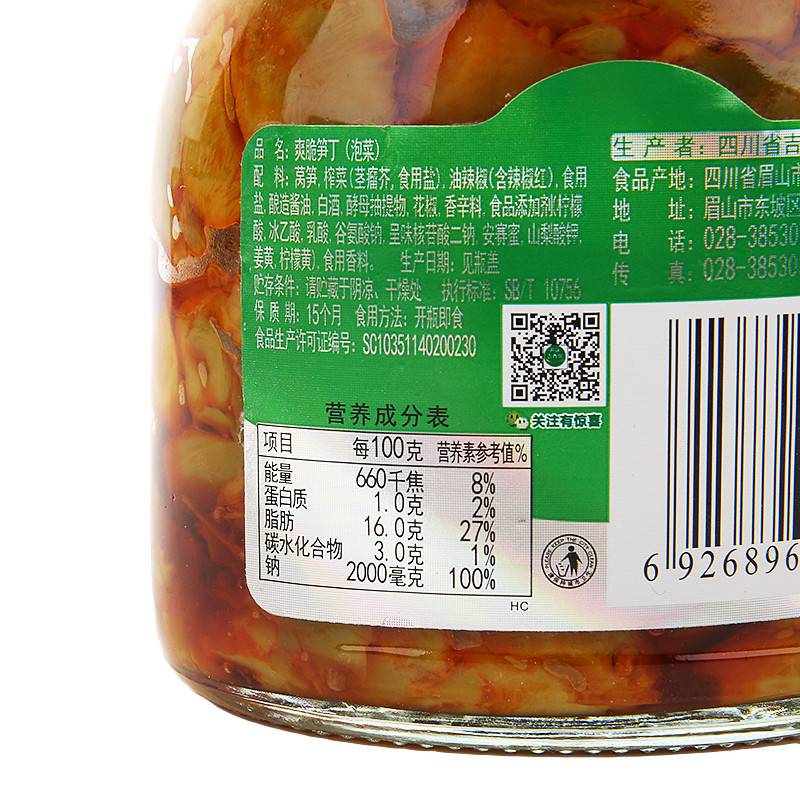 吉香居爽脆笋丁266g/罐 红油榨菜即食开味小菜