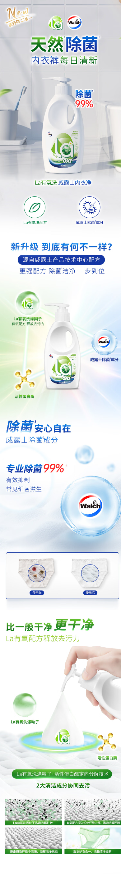 威露士内衣净I a有氧洗松木菌洗衣液300mlx4瓶内衣裤专用