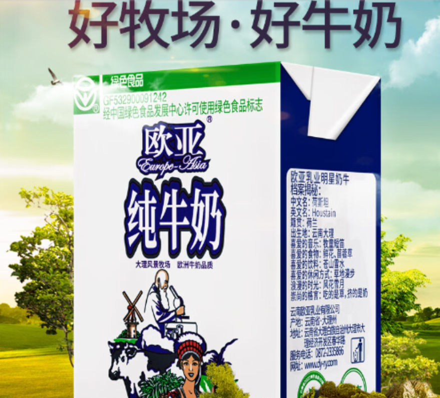品名:欧亚 纯牛奶 绿色食品 云南高原牧场