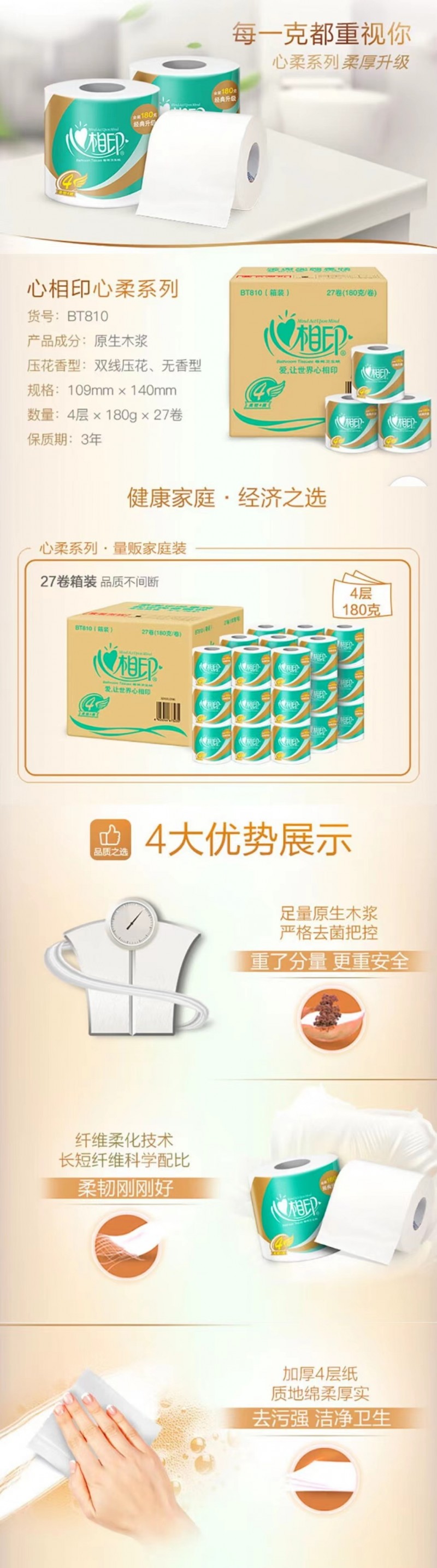 心相印心柔卷纸卫生纸 4层180g*27卷/箱