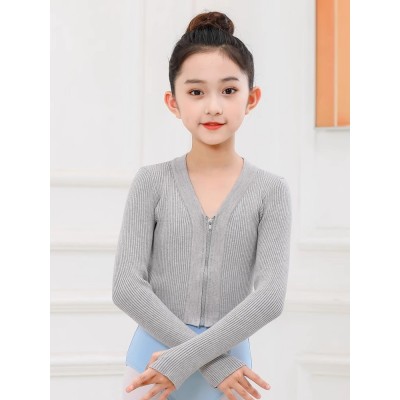 儿童舞蹈毛衣秋冬拉链针织外套女童长袖中国舞跳舞披肩保暖练功服