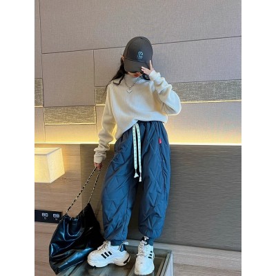 女童加绒裤子秋冬款新款大童羊羔绒童装冬季加厚儿童棉裤长裤