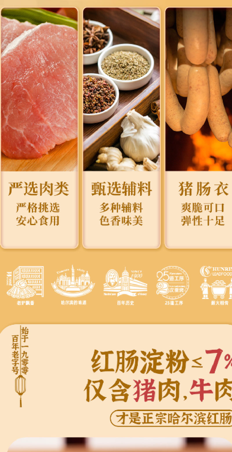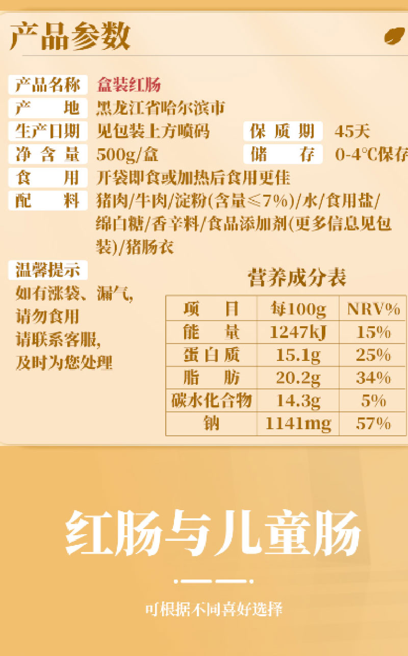 秋林.里道斯哈尔滨红肠500g 盒始于1900