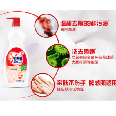 奥妙酵素洗衣液(内衣专用)1kg手洗抑菌杀菌抗霉菌去血渍去黄去异