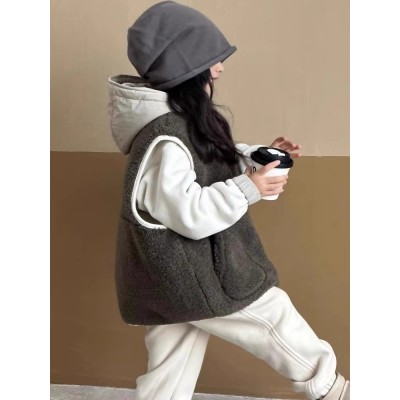 女童加厚马甲秋装新款儿童秋冬款加厚奥粒绒中大童两面穿坎肩