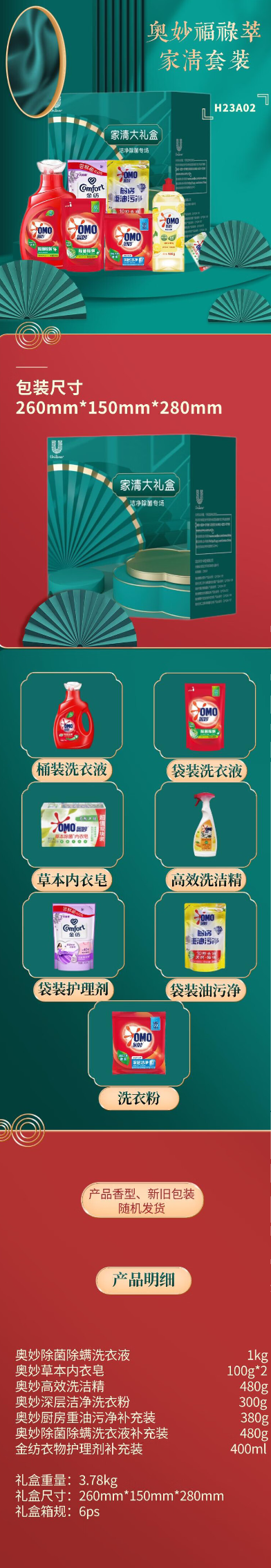 奥妙洗衣液洗洁精洗衣粉金纺护理剂组合套装商品