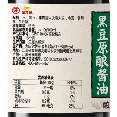 金龙鱼丸庄零添加黑豆本酿造酱油480ml/瓶