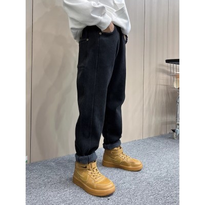 男童加绒裤子秋冬款新款中大儿童冬季一体绒黑色牛仔裤加厚潮