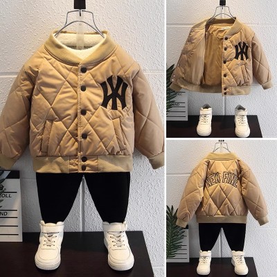 男童加绒外套秋冬年新款洋气冬装男孩加厚上衣儿童帅气棒球服