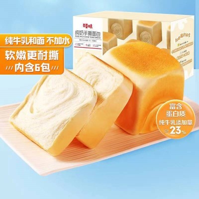 百草味 纯奶魔方面包480g 整箱手撕面包