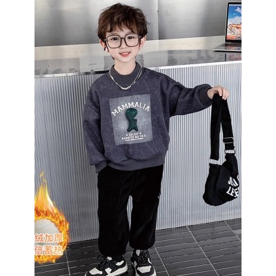 男童卫衣秋冬装新款洋气儿童加绒加厚上衣中小童宝宝打底衣服