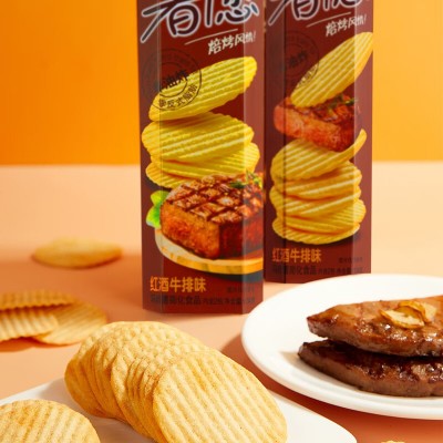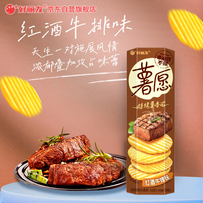 好丽友(orion)零食休闲零食薯愿薯片非油炸膨化食品红酒牛排味104g/罐