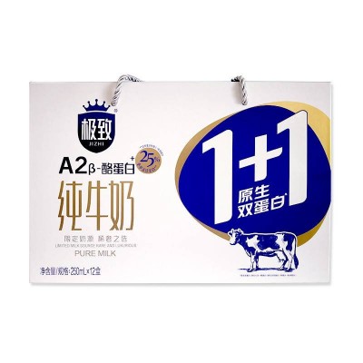 三元极致1+1原生双蛋白纯牛奶 250ml*12盒 整箱装