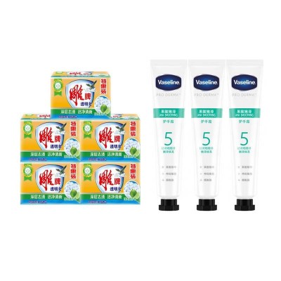 雕牌透明皂特惠装226g*5组共15块+凡士林果酸保湿护手霜18ml*3