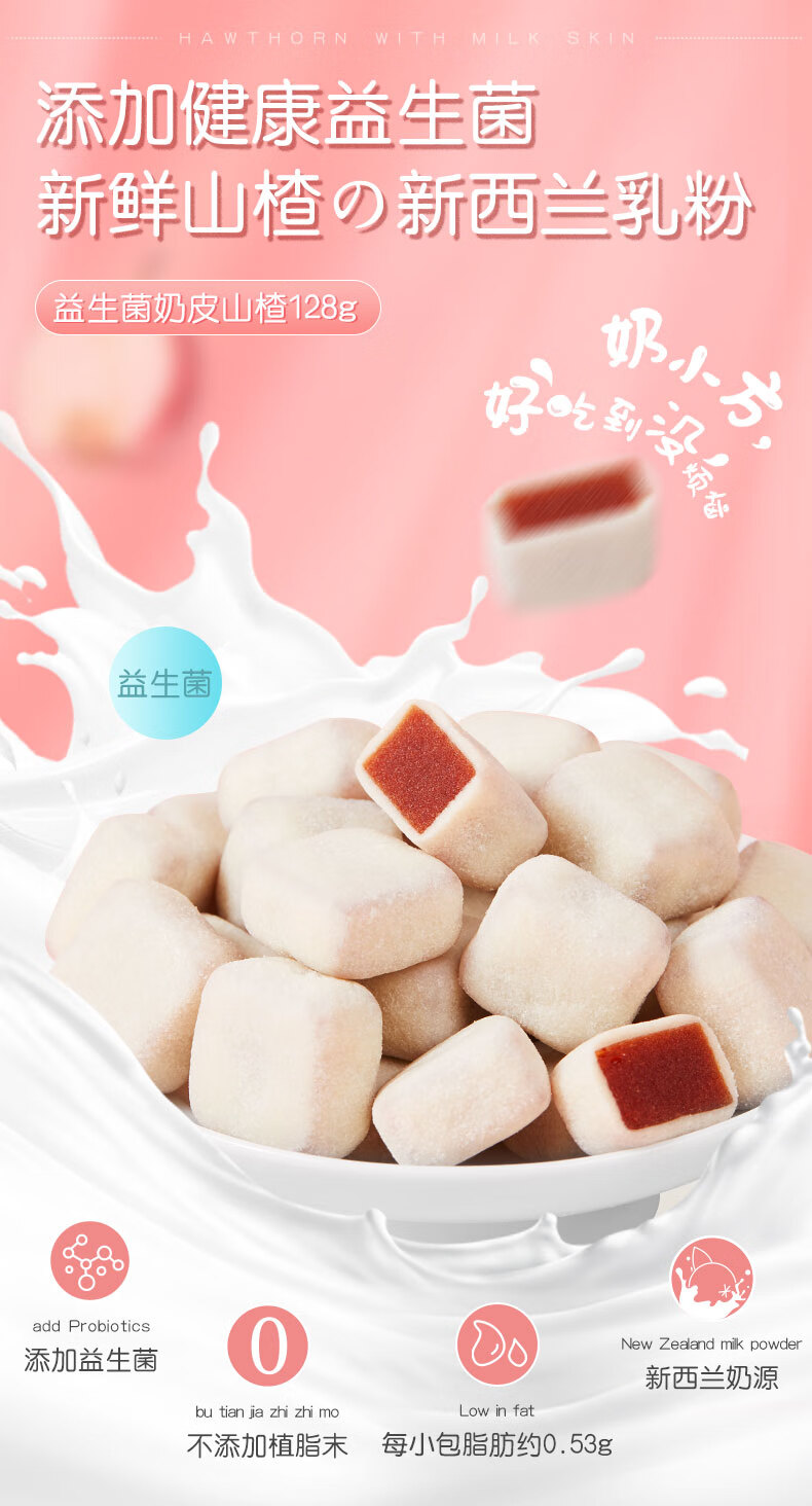 好想你 益生菌奶皮山楂128g/袋 蜜饯果干儿童休闲网红零食