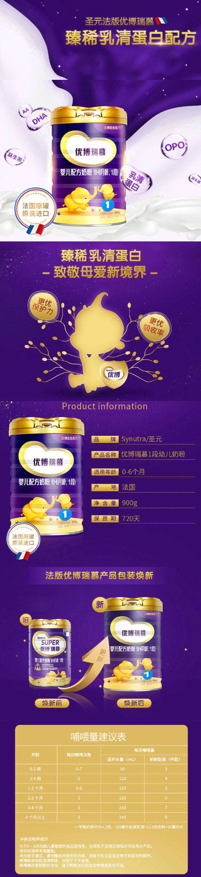 圣元 法国进口圣元优博瑞慕婴儿配方奶粉1段900g