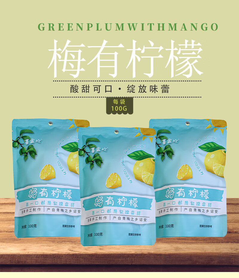 喜盈欢梅有柠檬话梅柠檬果脯青梅果干果肉孕妇酸甜零食梅子蜜饯无核 梅有柠檬100g 【一袋装】