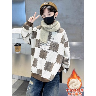 卖点:男童加绒卫衣冬季羊羔绒保暖打底衫