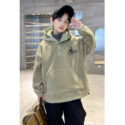 bridges bear/奇斯熊绿色男童冬装卫衣新款摇粒绒加绒加厚秋冬款中大童儿童男孩冬季潮