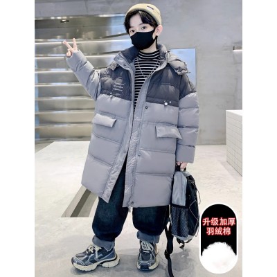 酷尔迪尼灰色男童中长款加厚棉服外套冬季中大儿童冬装羽绒棉棉袄男孩新款