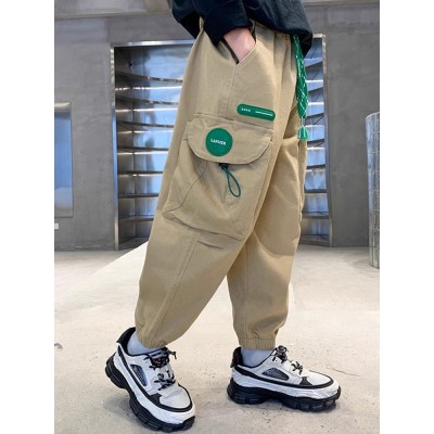 bridges bear/奇斯熊卡其色加绒加厚男童工装裤新款加绒加厚春秋季休闲裤男孩中大儿童秋冬款裤子