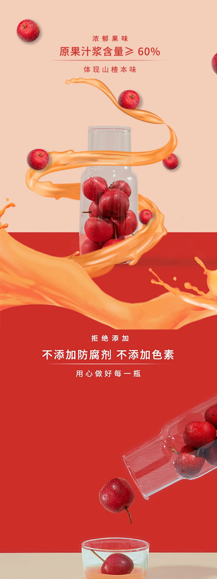 【冠芳】山楂树下山楂汁果汁饮料350ml*6瓶箱装解腻开胃原汁饮料批发