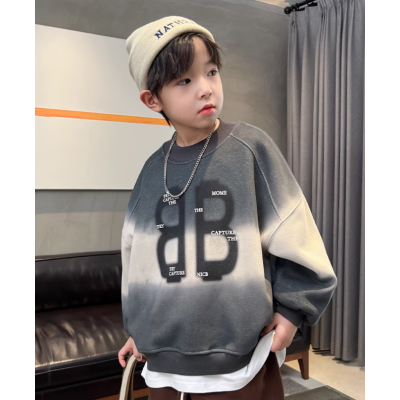 烈童灰色男童加绒卫衣一体绒秋冬新款儿童冬季加厚上衣中大童洋气冬装