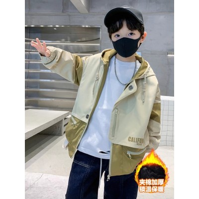 浙佰搭咖色童装男童冬装外套秋冬款新款中大童冬季夹棉儿童冲锋衣男孩潮