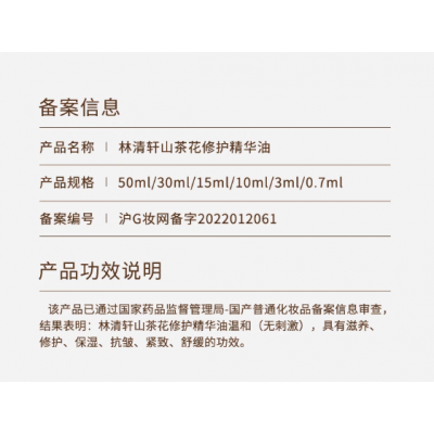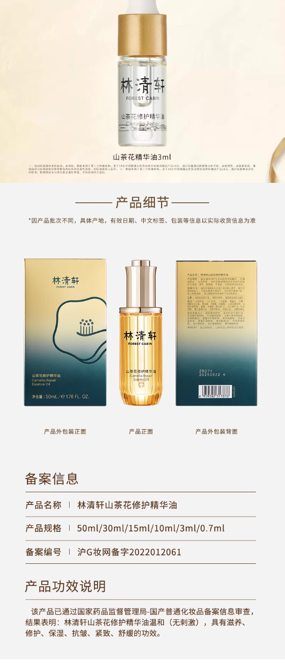 林清轩山茶花精华油3ml内修外抗以油养肤淡纹