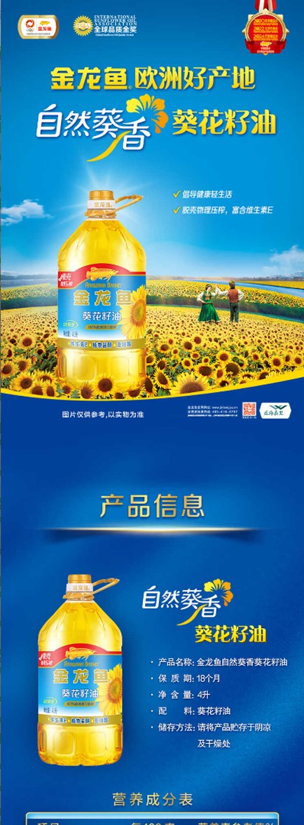金龙鱼精选葵花籽油保留天然维生素E一级压榨健康轻生活4L/桶