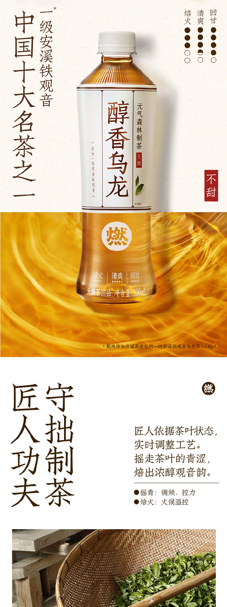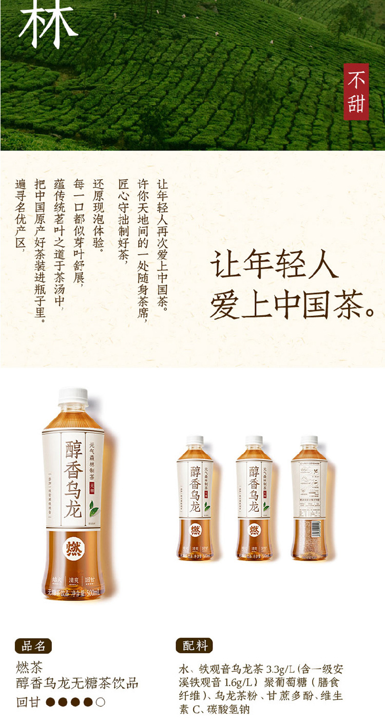 元气森林燃茶500ml*5瓶醇香乌龙茉莉花茶青柑普洱无糖茶饮料特价