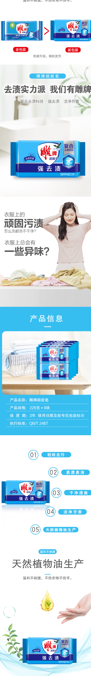 雕牌超皂226g*8块深层祛渍洗衣皂/肥皂(新老包装随机发货)