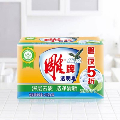 雕牌透明皂青柠飘香洗衣皂衣物清洁肥皂242g*2块/组整箱18组36