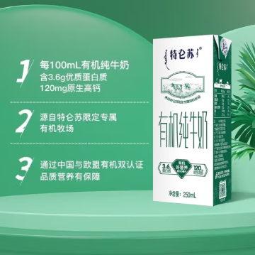 蒙牛特仑苏3.6g乳蛋白 有机纯牛奶 灭菌乳利乐梦幻盖 200ml×12包/箱