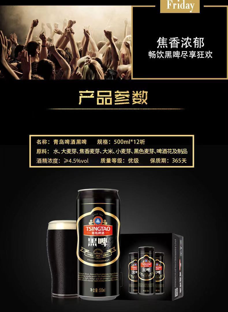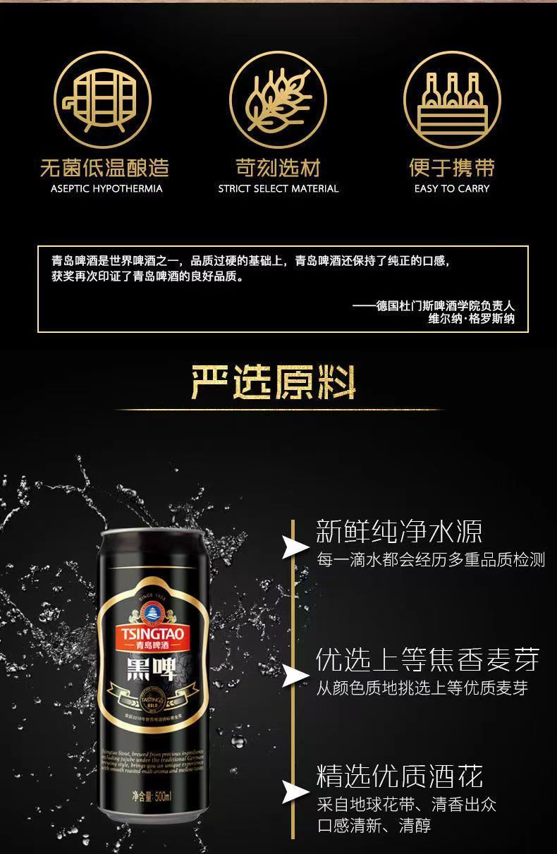 青岛啤酒黑啤500ml*12罐装瓶装啤酒整箱焦香浓郁