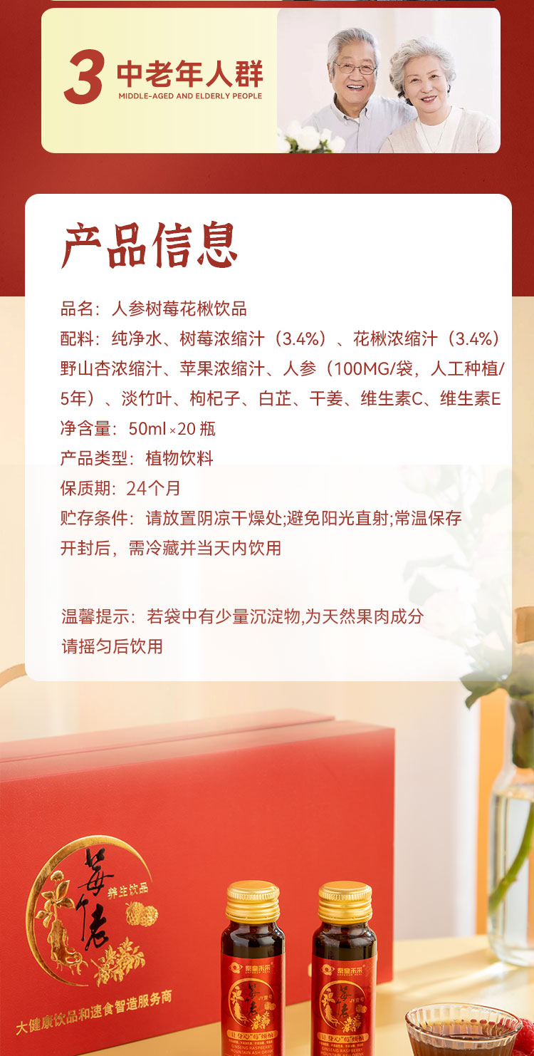秦皇禾采人参树莓花楸饮品50ml是由秦皇岛市禾采农业科技开发有限公司经营的饮料饮品->其他饮料饮品系列产品,该产品采用先进的加工技术来保留原材料的营养成分和口感,确保饮品的味道不受影响。在生产过程中注重质量控制,从生产流程的各个环节到成品的检测,都制定了严格的质量标准和控制措施。通过这些措施,保证产品的质量稳定性和安全性,让消费者放心饮用。该饮品可以为身体提供水分,同时还能带来美妙的口感,在市场上具有广泛的需求,无论是在聚会、办公还是休闲场合,都可以成为人们的贴心之选。想要代理本款产品的经销商欢迎致电!