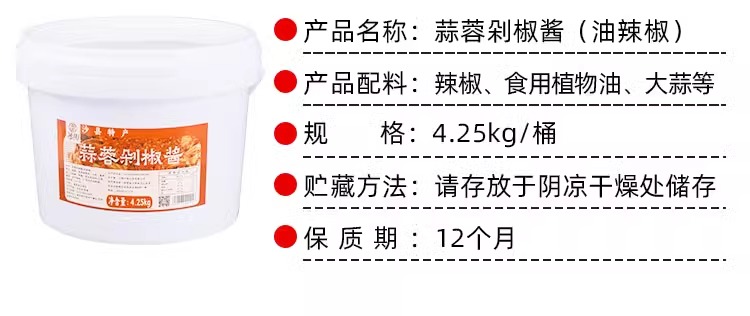 沙县含桶装9斤蒜蓉剁椒酱 凉皮拌面酱料火锅蘸料小吃店调味料商用