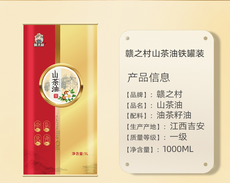 赣之村压榨一级纯山茶油食用油家庭装1L/瓶
