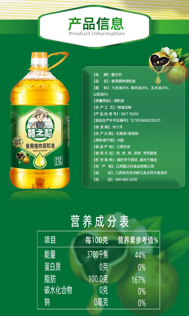赣之村山茶营养调和油5L健康营养调和科学配比植物油