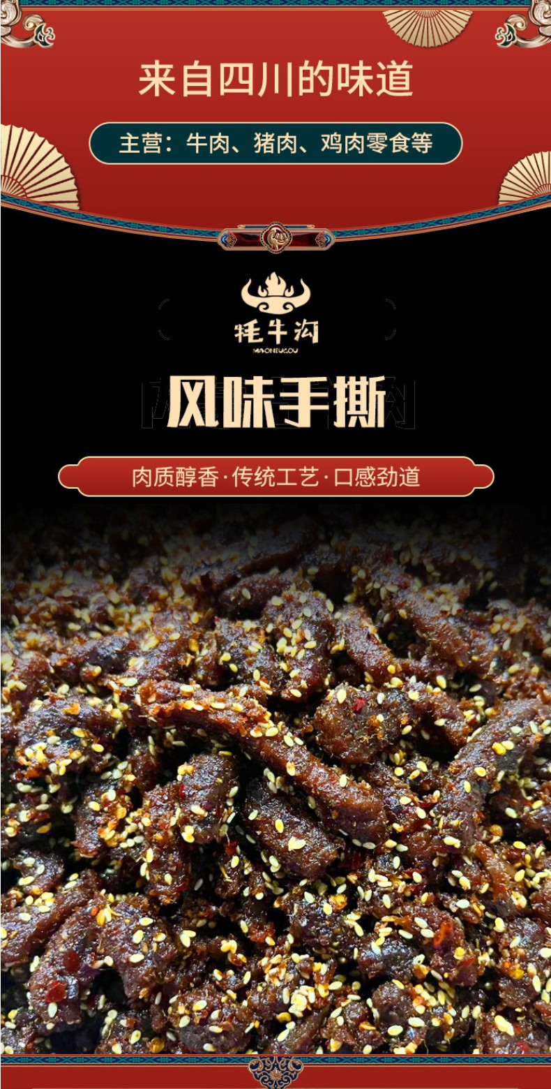 牦牛沟麻辣冷吃肉干地道四川特产麻辣五香风味猪肉零