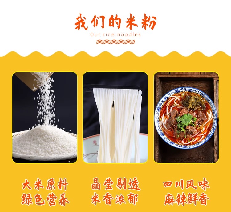 卖点:大米原料绿色营养 晶莹剔透米香浓郁 四川风味麻辣鲜香