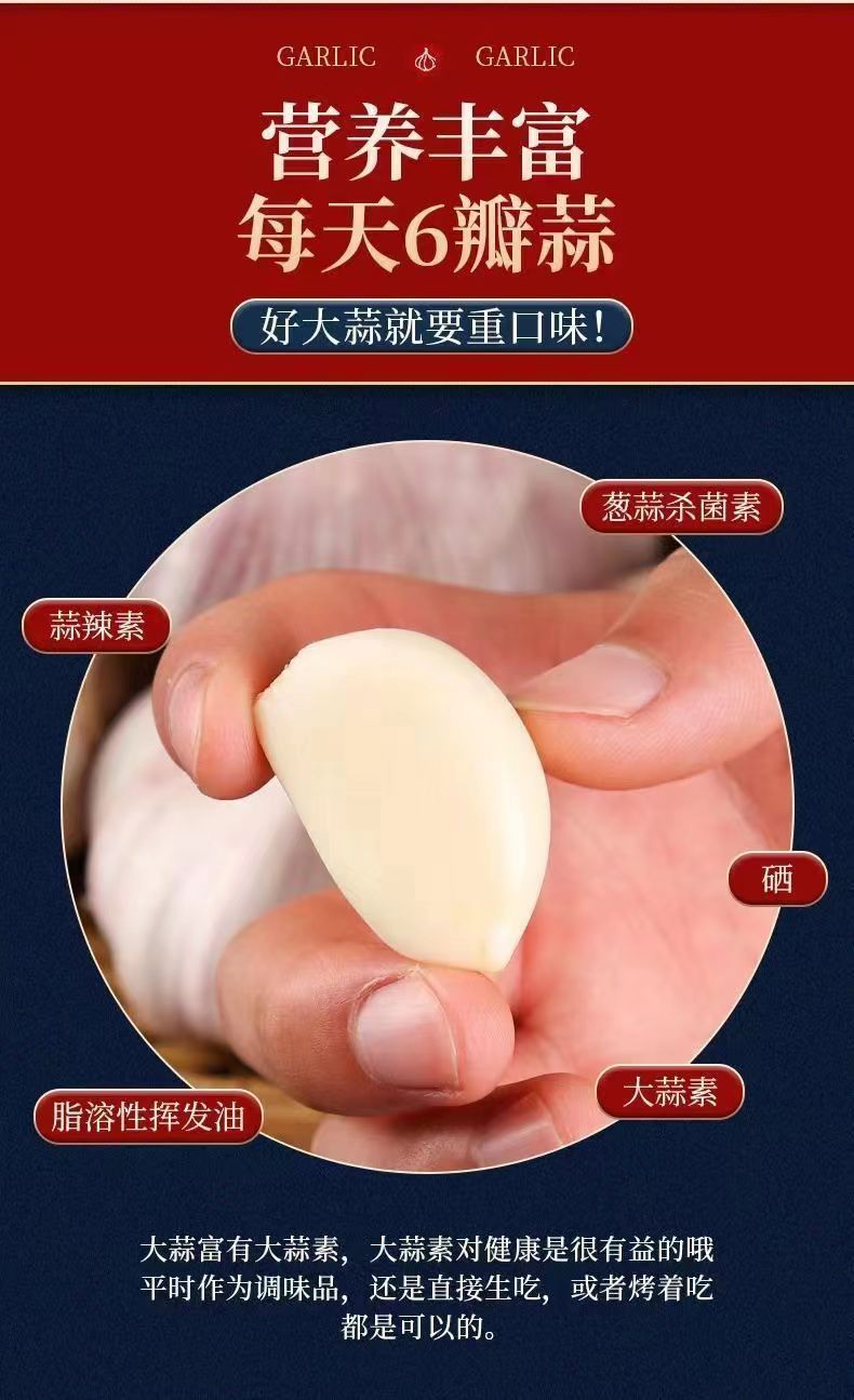 卖点:河南土特产 果实饱满 瓣瓣分明色泽明亮 香辣美味