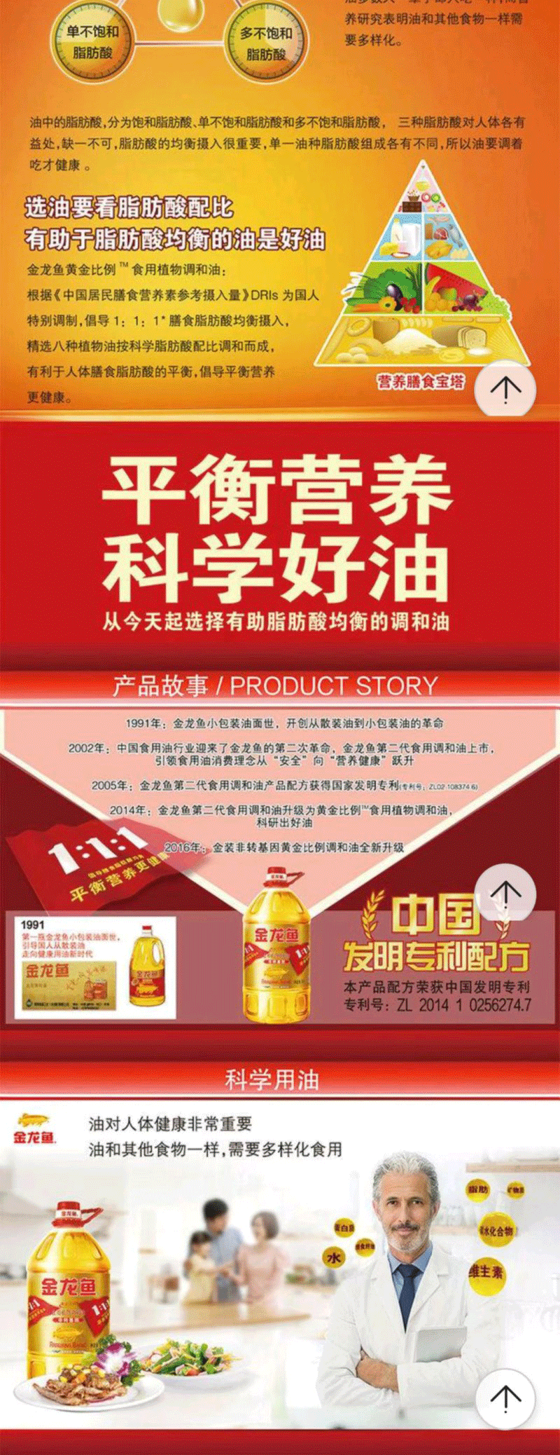 金龙鱼非转基因黄金比例调和油1:1:1平衡营养更健康1.