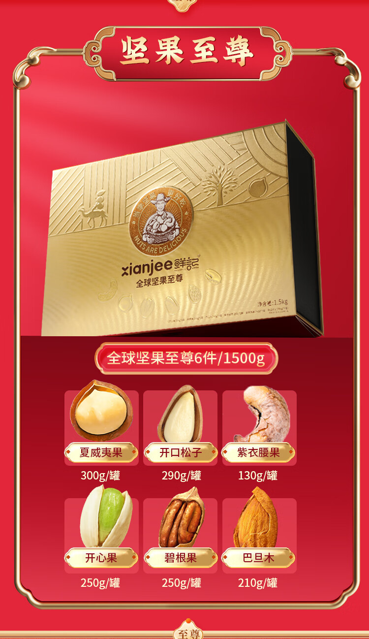 鲜记全球坚果至尊1.5kg/盒 坚果炒货 休闲零食团购送礼佳品