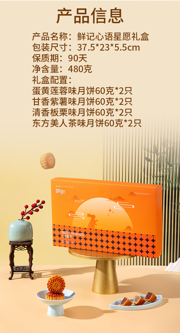 鲜记中秋月饼礼盒 星语心愿(4味8粒) 480g/盒