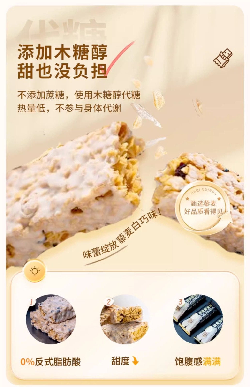 稼祺藜麦巧克力能量棒蛋白棒代餐饱腹即食25g*8支