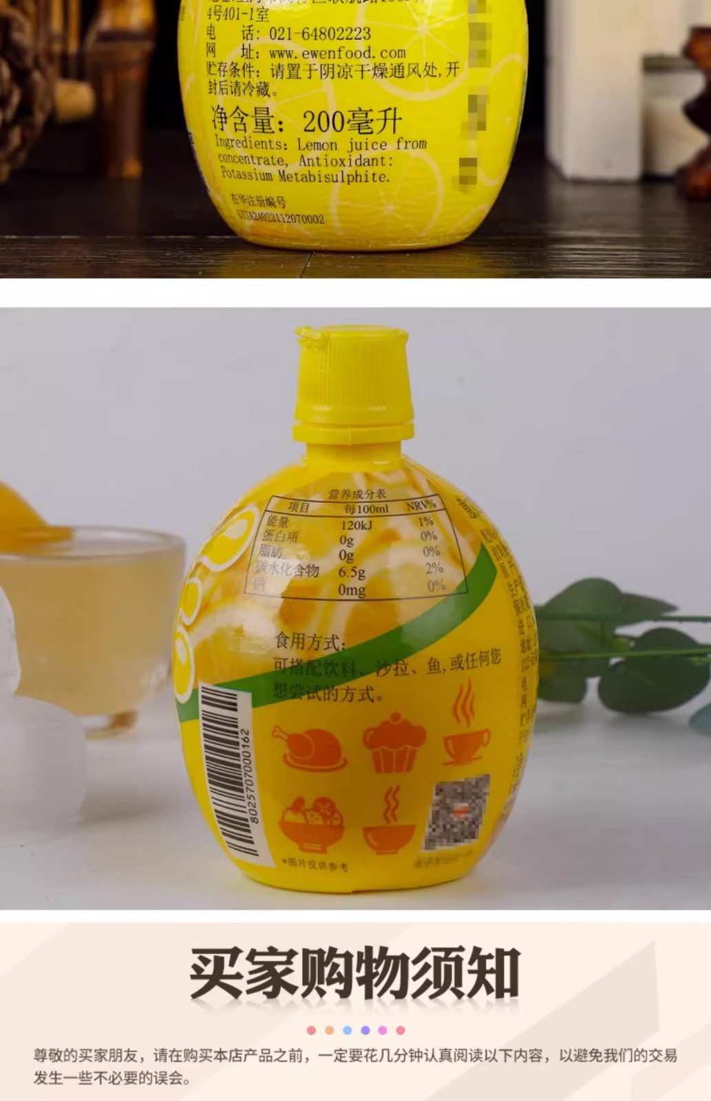 进口意文黄柠檬汁200ml*12整箱商用浓缩原汁烘焙蛋糕用奶茶店专用