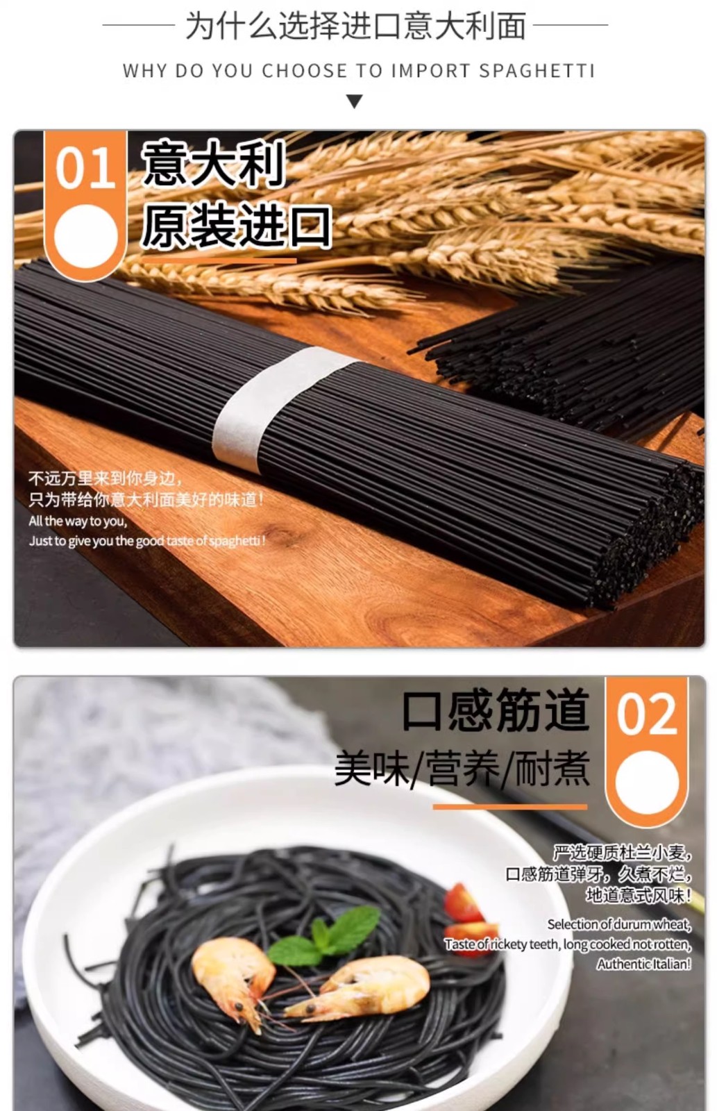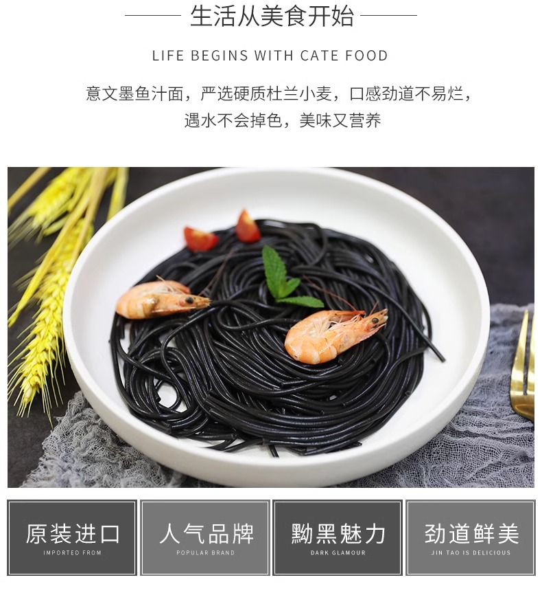 卖点:墨鱼汁意大利面 原装进口 人气品牌 黝黑魅力 劲道鲜美