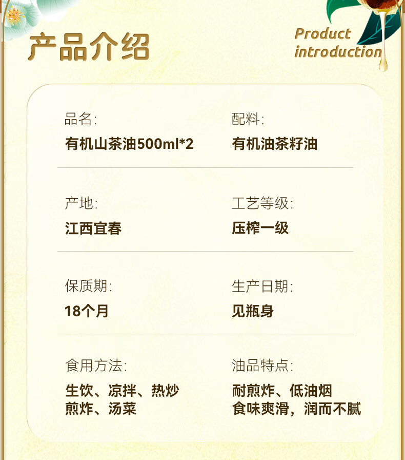 油大福 油大福山茶油1L有机油茶籽油 冷榨一级老树龄茶树油 高油酸油