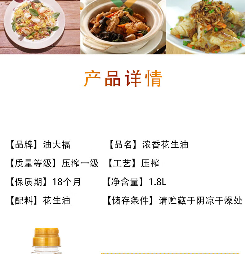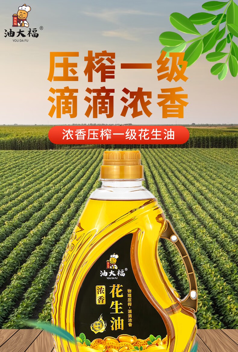 油大福花生油1.8L 浓香压榨一级 花生油 物理压榨食用油